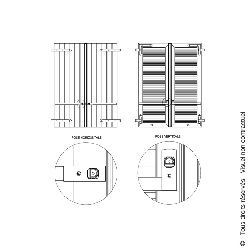 Il appartient au poseur de choisir la visserie adaptée à son support pour la pose des différents accessoires sur la vantail.