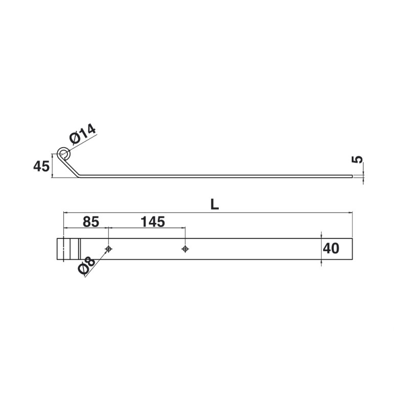 Ces pentures sont percées de trous de 8 mm de diamètre, le premier se situant à 85 mm de l'axe du gond.