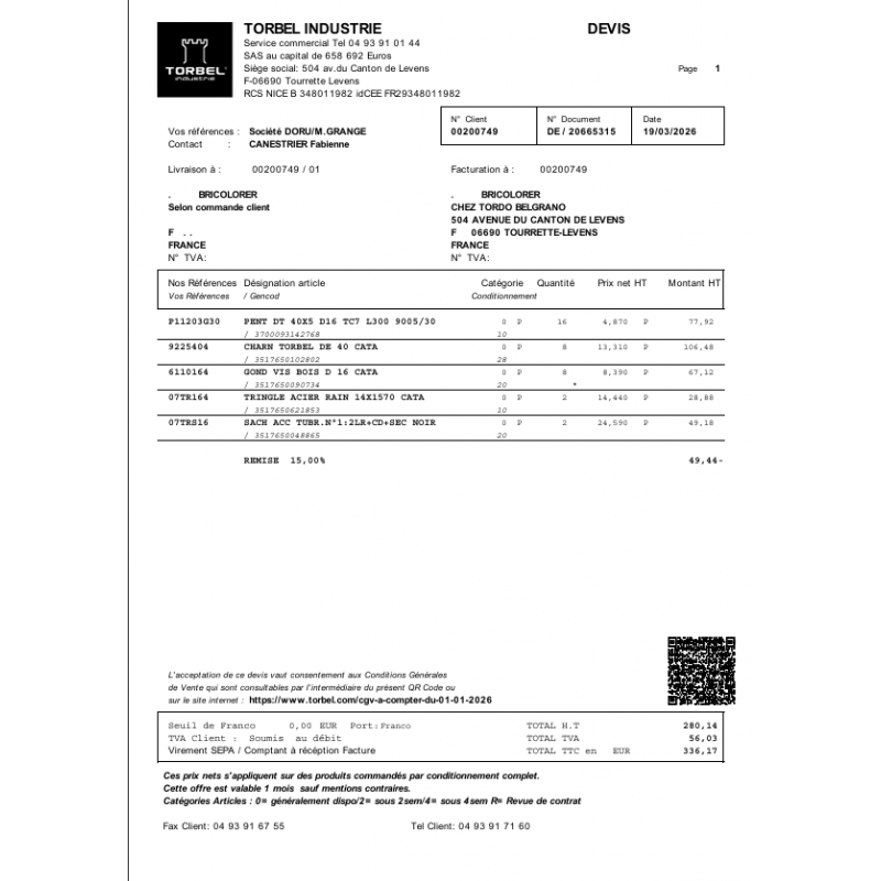 Suivant devis validé le 30/03